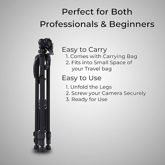 - أرجل قابلة للتمدد: لضبط ارتفاع الحامل ثلاثي القوائم حسب الحاجة.