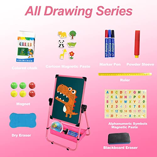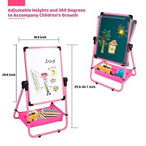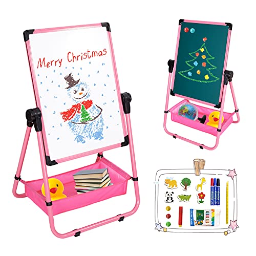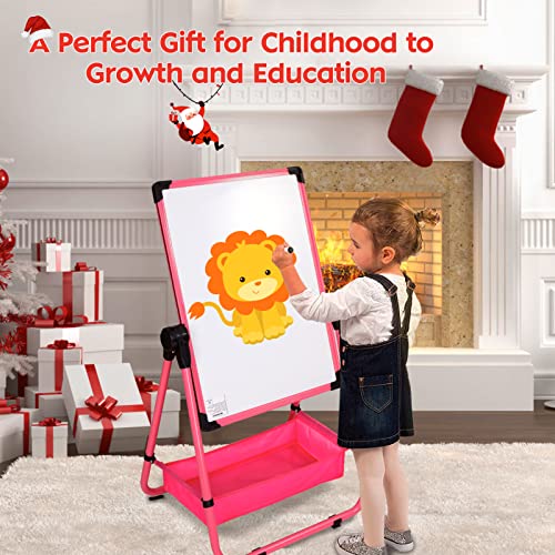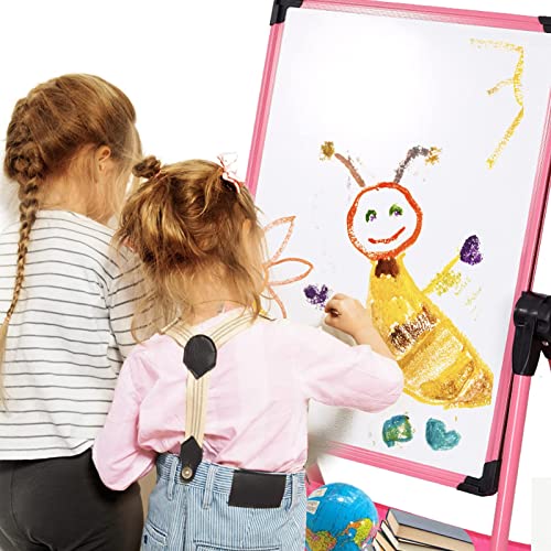 نوكيد حامل فني للأطفال، لوح رسم مزدوج الجوانب قابل للدوران للأطفالوسبورة طباشير، حامل فني للأطفال الصغار قابل للتعديل على شكل حرف U للأولاد والبنات، زهري