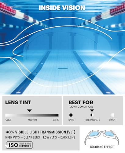 - مريح وثابت: نظارات حمام السباحة مجهزة بعدسات محمية من الأشعة فوق البنفسجية ومعالجة ضد الضباب؛ سدادات سيليكون ناعمة لا تسبب الحساسية وآمنة على البشرة الحساسة وتوفر ملاءمة محكمة لمنع التسرب.