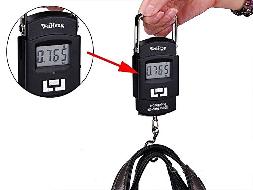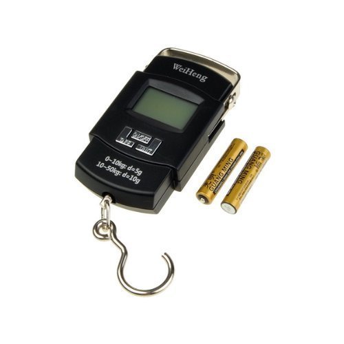 ميزان إلكتروني محمول قابل للتعليق من البلاستيك لتوزين الأشياء بوزن يصل إلى 50 كجم من سيري، أسود