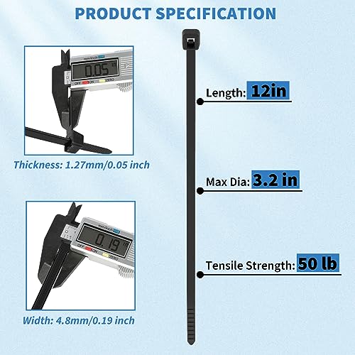 - 🔴 رباط كابل بطول 30.48 سم بقوة شد 22.67 كجم، أربطة بلاستيكية فائقة القوة ذاتية الغلق ومقاومة للأشعة فوق البنفسجية بسوستة سوداء للاستخدام في الأماكن المغلقة والمفتوحة.