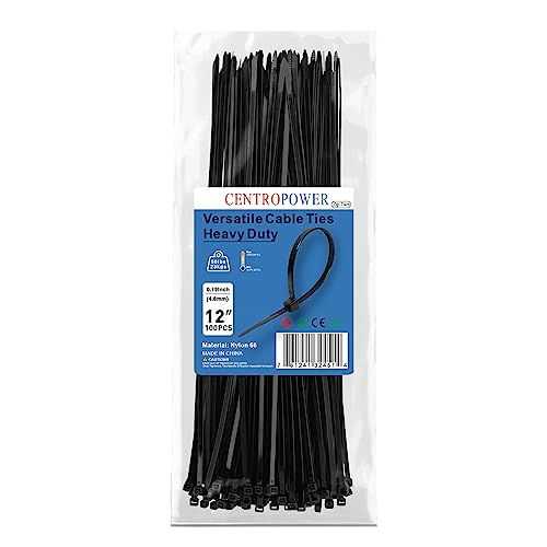 أربطة بسوستة سوداء من سينتروباور، 30.48 سم، 100 قطعة، قوة شد 22.67 كجم، أربطة كابلات، أربطة بسوستة شديدة التحمل للاستخدام الخارجي