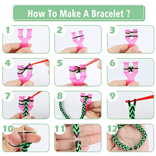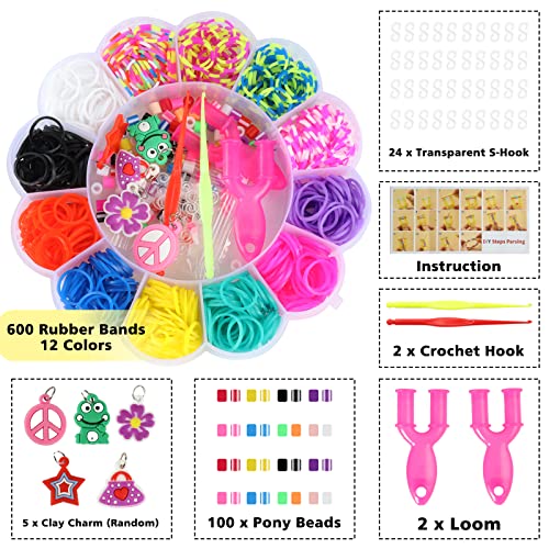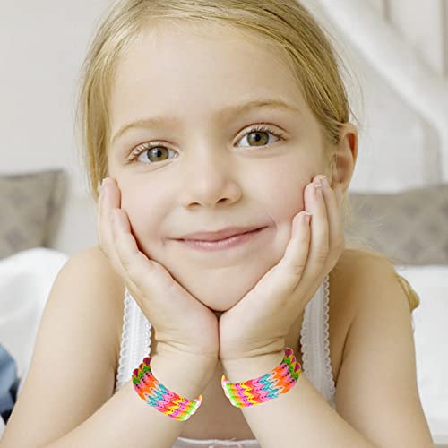 - اصنع سوارك الخاص - تحتوي مجموعة أساور النول هذه على 600 قطعة من الحلقات المطاطية في 12 لونًا، و100 خرزة دائرية ملونة، و24 خطافًا على شكل حرف S، و5 قلادات طينية عشوائية، وخطافين كروشيه، ونولين وتعليمات خطوة بخطوة لمساعدة الأطفال على الأعمال اليدوية.