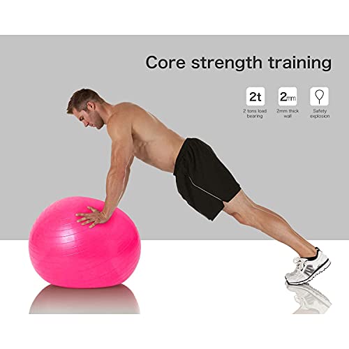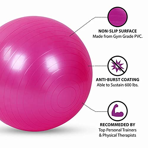 كرة توازن من بلاستيك بي في سي للبيلاتيس وتمارين اللياقة البدنية والجمباز وتمارين الولادة للنساء الحوامل مع مضخة نفخ من فيرسكوس مقاس 65 سم ولون وردي