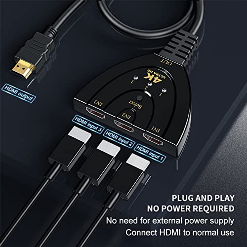 مفتاح 4 كيه HDMI 1.4، صندوق تحديد 3 منافذ، محول HDMI 3 في 1، يدعم 4 كيه 3D 1080 بيكسل لجهاز PS4/PS3، Xbox، HDTV، روكو، الخ، HD، الشاشات