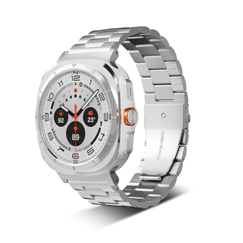 سوار معدني لساعة سامسونج جالاكسي الترا ساعة بديل من الستانلس ستيل الممتاز قابل للتعديل متوافق مع 7 47 ملم 2024 للرجال والنساء