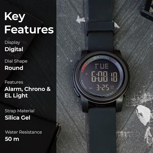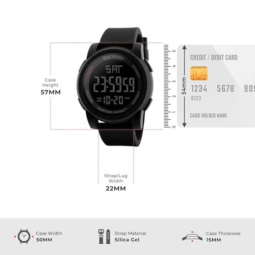 سكمي ساعة يد رياضية رقمية للرجال بشاشة LED ووجه كبير الكترونية عسكرية مقاومة للماء ومنبه وساعة توقيت واضاءة خلفية كاجوال للاستخدام الخارجي بلون اسود - 1257