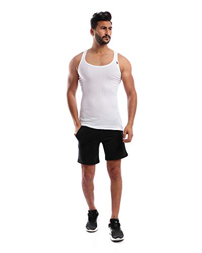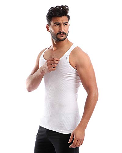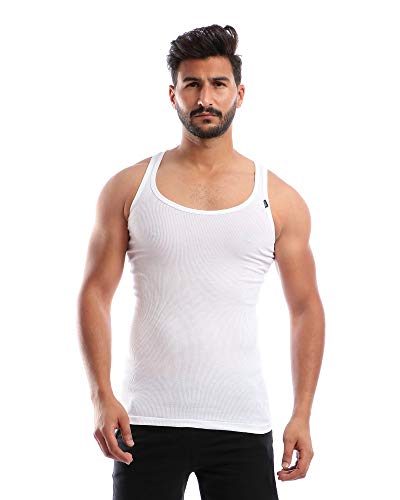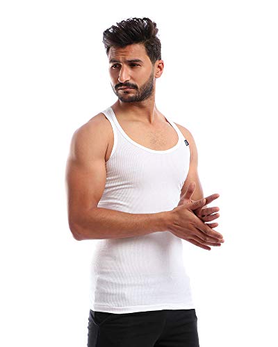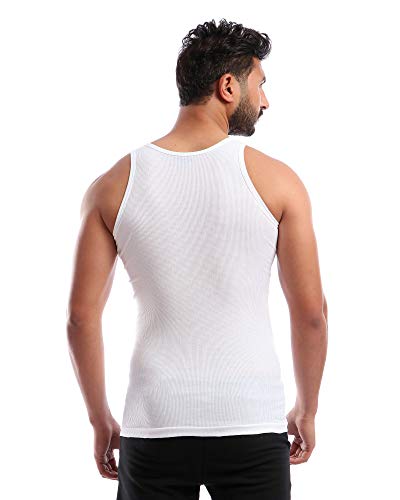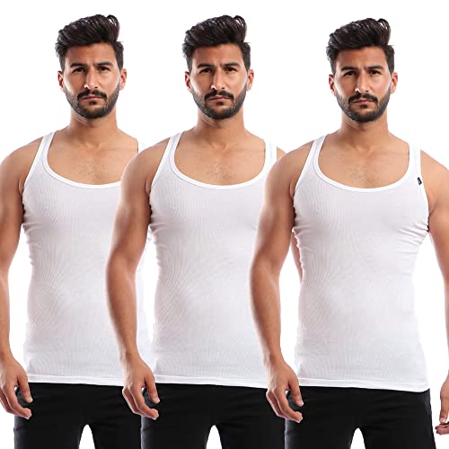 طقم مكون من 3 فانلات داخلية قطن بدون أكمام - لون ابيض - للرجال