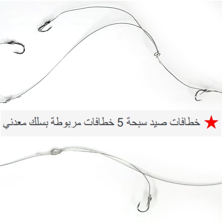 خطافات صيد سبحة، 5 خطافات مربوطة بسلك معدني، 3 قطع