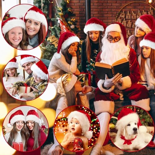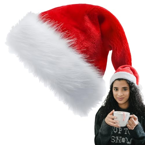طواقي سانتا كلوز سميكة وأنيقة للكريسماس مصنوعة من القطيفة للبالغين والأطفال طواقي فاخرة لزي عيد الميلاد ورأس السنة الجديدة والحفلات بطابع سانتا كلوز