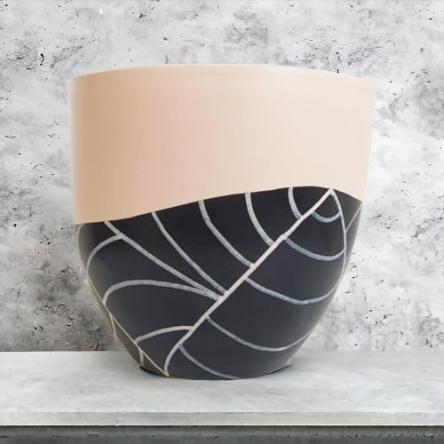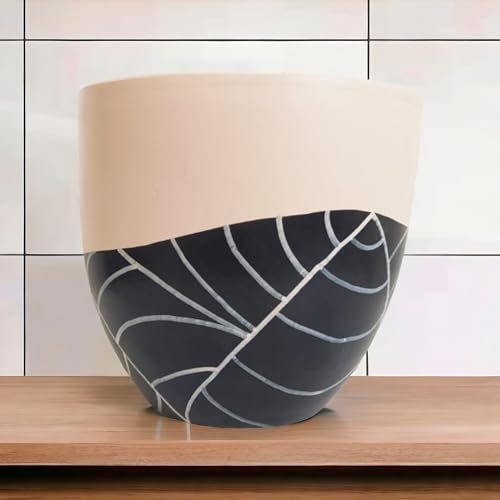 وعاء زينة بتصميم اوراق شجر سوداء - لتزيين المكتب وديكور المنزل - نباتات داخلية طبيعية - صبار ونباتات عصارية - صلصال 25 سم