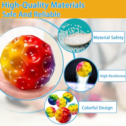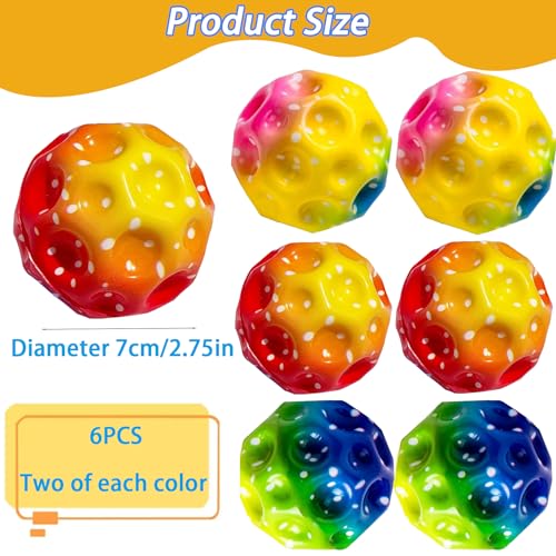مجموعة من 6 كرات قفز استرو من تزكينج، كرة على شكل قمر، كرة مطاطية عالية القفز، كرات مرتدة ملونة فائقة التمدد سهلة الإمساك به للأولاد والبنات، ومناسبة للبالغين لتخفيف التوتر، قطر 7 سم