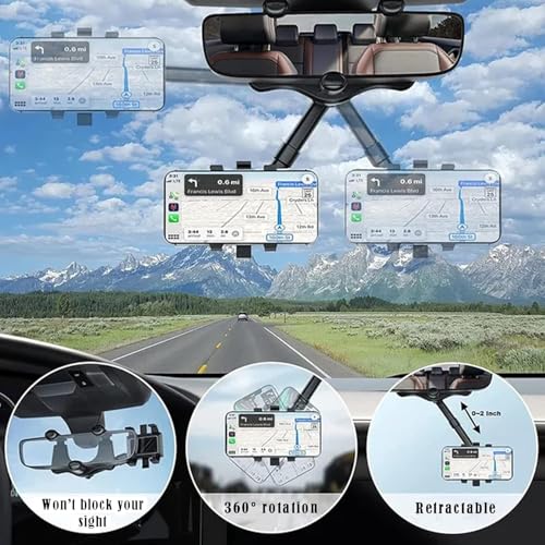 - تشغيل بيد واحدة - يتيح لك حامل الموبايل لمرآة السيارة إمكانية ضبط موبايلك بسهولة على الشاشة الأفقية أو العمودية تقريبًا من خلال يد واحدة أثناء القيادة. يحافظ التصميم بالمخالب لحامل الهاتف القابل للدوران والسحب على تثبيت الهاتف بإحكام في مكانه بغض النظر عن مدى وعرة الطريق. حامل موبايل للسيارة قابل للدوران والسحب مناسب لجميع الهواتف المحمولة الحديثة وجميع مرايا الرؤية الخلفية للسيارة