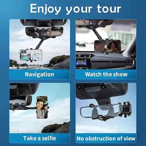 - حامل الموبايل المثبت على مراية صالون السيارة مناسب لجميع الموبايلات والسيارات. الآن يُمكنك الاستماع إلى الموسيقي ومشاهدة مقاطع الفيديو واستخدام الهاتف وإجراء مكالمات الفيديو والبث المباشر وتسجيل مقاطع الفيديو وتسجيل البث المباشر أثناء القيادة (فقط بيد واحدة).