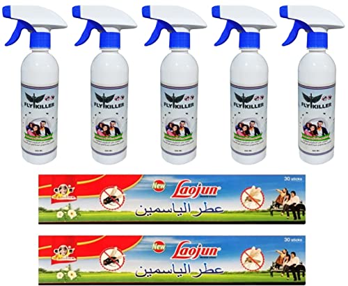 عرض 5 فلاي كيلر أقوى مبيد للذباب 500 مل + 2 علبة بخور طارد وقاتل للذباب