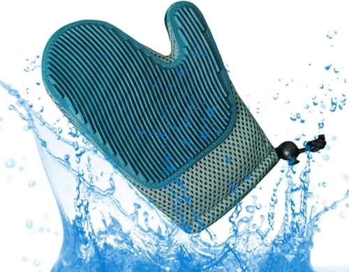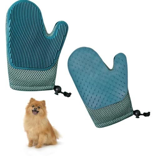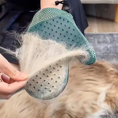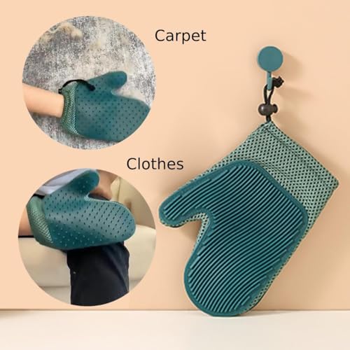قفاز حلاقة للقطط والكلاب - يزيل الشعر بلطف ويجعل تنظيف الأسنان بالفرشاة سهلاً - مثالي لجلسات الحلاقة في المنزل (اخضر داكن)