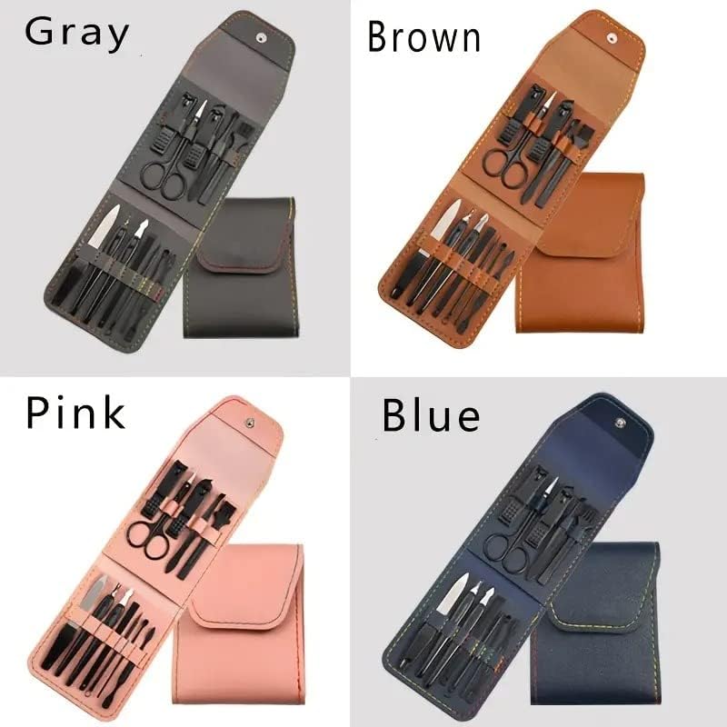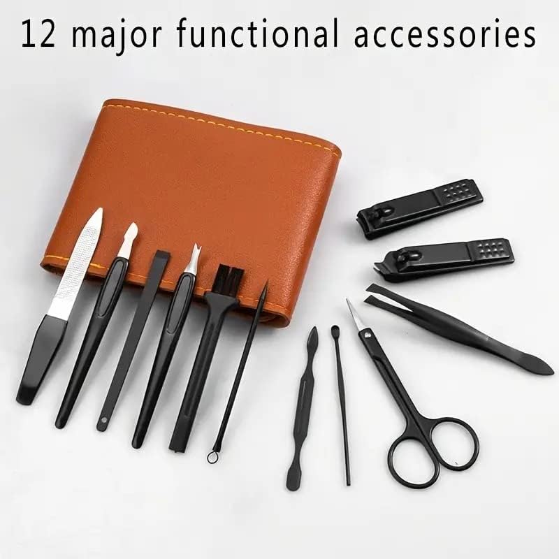 مجموعة ادوات مانيكير وباديكير للعناية باظافر اليدين والقدمين من الستانلس ستيل من 12 قطعة، مجموعة مقصات اظافر احترافية ومبرد اظافر للسفر، هدية للرجال والنساء للسفر والمنزل