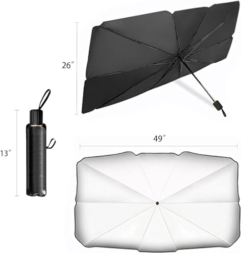 - 【سهل الطي والتخزين】: مظلة سيارة قابلة للطي، سهلة الفتح والإغلاق. تتضمن العبوة شنطة تخزين جلدية لتخزين أكثر ملاءمة. وفر المساحة داخل سيارتك.