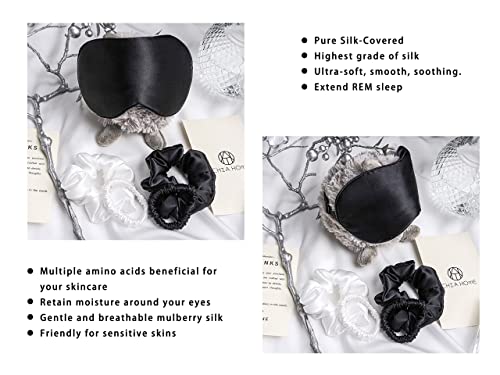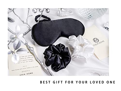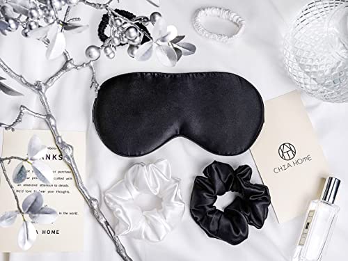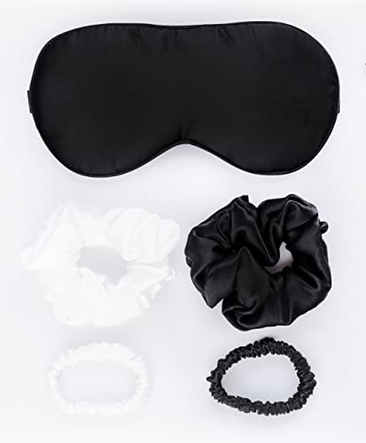 قناع العين الحريري للنوم من شيا هوم مع عصابة عين من حرير التوت الناعم لنوم كامل الليل مع 4 ربطات شعر مريحة