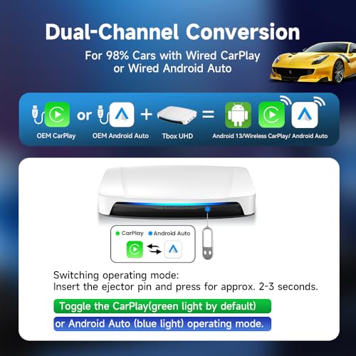 - ✅【تبديل ثنائي القناة】: يدعم هذا الجهاز التبديل المزدوج القناة، مما يتيح الانتقال السهل بين أوضاع كاربلاي (الافتراضي) ونظام أندرويد التلقائي. أوضاع التبديل بسيطة: إما عبر بطاقة تي اف (تتطلب نقل الملفات) أو باستخدام منفذ الدبوس الموجود في الجزء السفلي من الجهاز. أدخل دبوس البطاقة واستمر لمدة 3 ثوانٍ تقريبًا للتبديل بين الأوضاع، مع ضوء أخضر يشير إلى وضع كاربلاي.