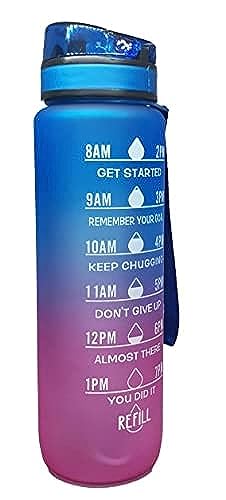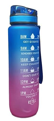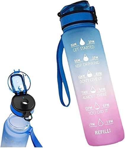 زجاجة مياه ملونة متدرجة، مع محدد وقت تحفيزي - بدون شفاطة (ازرق الى بينك)، بلاستيك