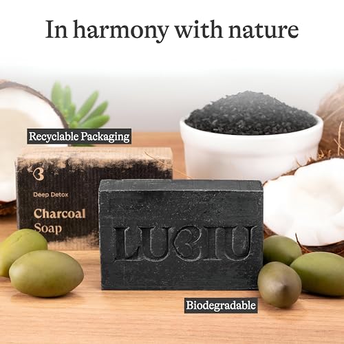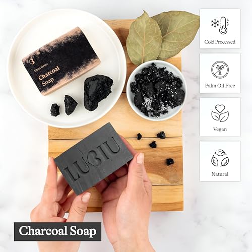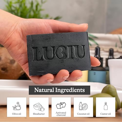 صابون الفحم لإزالة السموم - تركيبة منقية ومنظفة - أسود طبيعي نباتي لبشرة خالية من حب الشباب على الوجه والجسم - مصنوع يدويًا في الاتحاد الأوروبي للحصول جودة وعناية فائقة