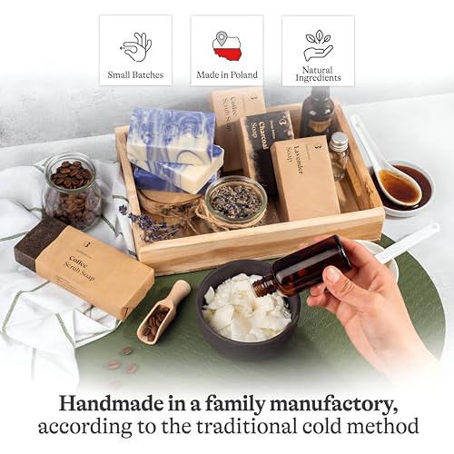 - تم تصنيع هذا الصابون يدويًا في الاتحاد الأوروبي، ويركز على الجودة والعناية في عملية إنتاجه. يتم تصنيع كل قطعة باهتمام بالتفاصيل، مما يضمن تجربة لطيفة وفعالة للعناية بالبشرة تعكس التقاليد الحرفية للحرفية الأوروبية.