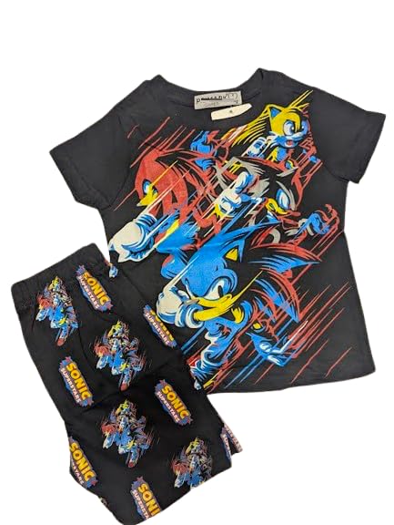 طقم بيجامة للاولاد مصنوع من القطن بنسبة 100% مكون من تيشرت وشورت