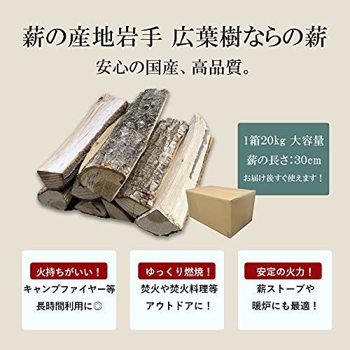 شركة هوكوبو سانجيو كو ليمتد حطب نارا ياباني عالي الجودة، احتراق مستمر مع دخان منخفض، مثالي للمدافئ والشواء، من خشب طبيعي عريض الأوراق من محافظة إيواتي، الطول تقريبي 30 سم، 20 كجم، L