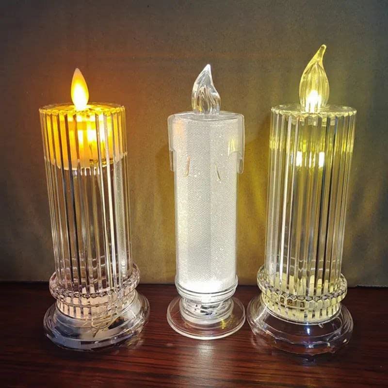 شمعه برونز اكلاريك ليد بحجاره شبيهة الكريستال 18 سم