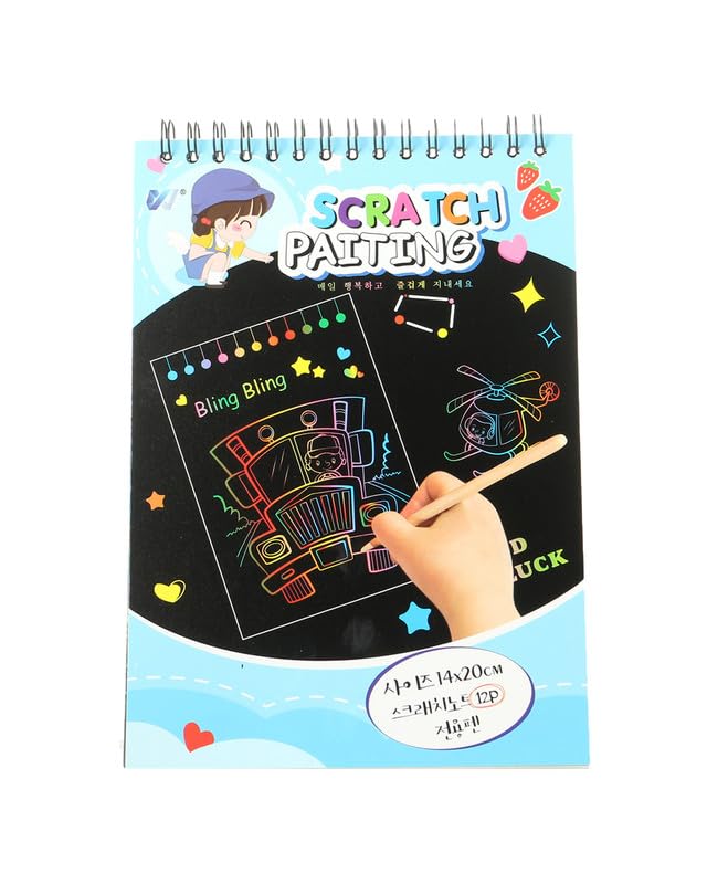 دفتر رسم سكراتش مع قلم خشبي للأطفال - متعدد الألوان، 20 سم × 13 سم، 1133002-4