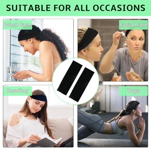أربطة للرأس للشعر بأستك لشعر النساء بعرض 7 سم مزودة بمسامات للتهوية تمتص العرق مناسبة للمكياج واليوجا والجري وممارسة الرياضة من سولاربيك، لون أسود، قطعتان