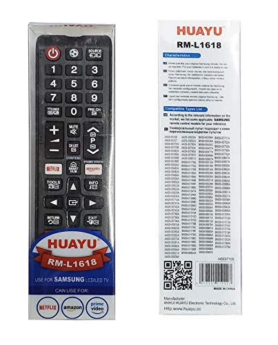 جهاز تحكم عن بعد هواوي من تيكفيتي® رقم. RM-L1618، لتلفزيون سامسونج الذكي LED مع نتفليكس وأمازون، أسود