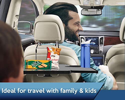 صينية مقعد سيارة محمولة متعددة الوظائف من زون تيك طاولة سوداء لمقعد السيارة للاب توب ونوت بوك وتناول الطعام والمشروبات مع صغيرة بتصميم سحب ممتد