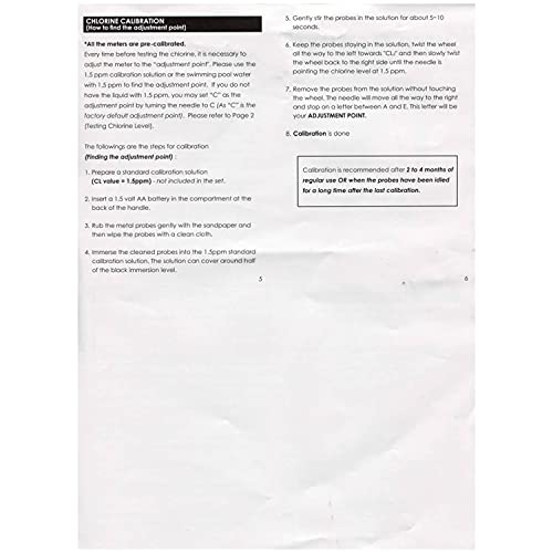 - محلل جودة المياه يعمل بالبطارية للكشف عن محتوى الكلور (1.2 - 1.7 جزء في المليون) وقياس لدرجة الحموضة