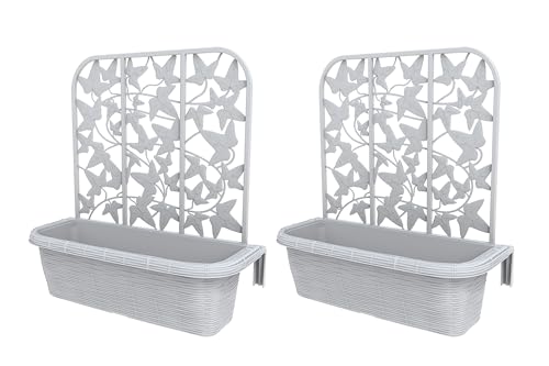 صندوق حامل فرشاة مرحاض ايفولوشن اس.بي.ايه من باما، طقم أصيص زهور روندين للخصوصية من قطعتين، أبيض، 60 سم