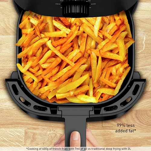 - تقنية الهواء الساخن: مقلاة صحية تقدم نتائج ذهبية ومقرمشة مع القليل من الزيت أو بدون زيت؛ دهون مضافة أقل بنسبة 99%.