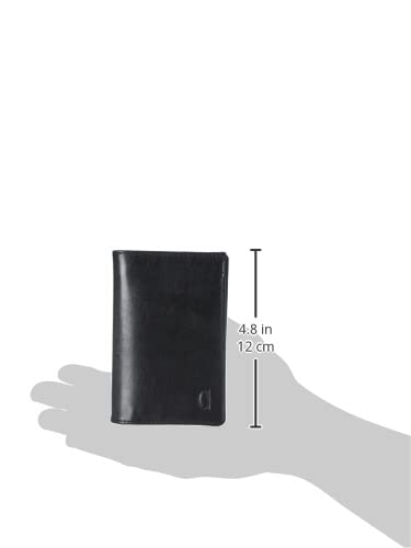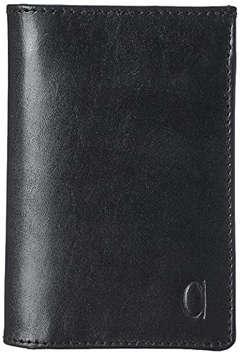 الفا ليثر كو. محفظة جلد مستطيلة الشكل ثنائية الطي للرجال بشعار على الجهة الأمامية، أسود