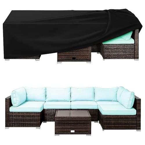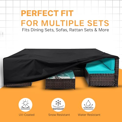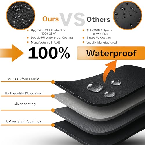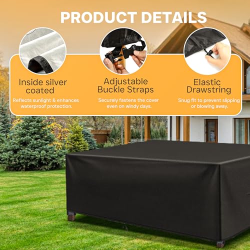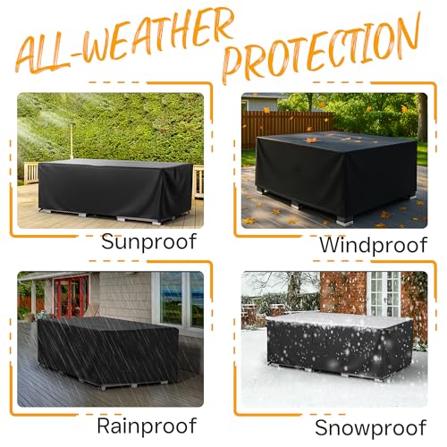 - 【مادة شديدة التحمل ومقاومة للماء】- من قماش اوكسفورد المطلي بالبولي يوريثان 210D، غطاء أثاث شديد التحمل هذا مقاوم للماء والأشعة فوق البنفسجية والتمزق ومقاوم للبهتان، يحمي أثاثك بشكل أفضل من البيئات القاسية مثل أشعة الشمس القوية والمطر والثلج والغبار وأكثر من ذلك.
