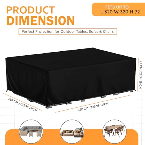 أغطية اثاث الحديقة والفناء مقاومة للماء من توبيفي، أغطية واقية من قماش اوكسفورد عالية التحمل مقاومة للأشعة فوق البنفسجية لكنبة مربعة في الهواء الطلق، 320×320×72