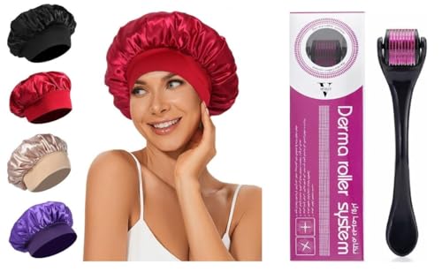 بونيه حريري للنوم من فيتيلي-ساتين ونظام ديرما رولر من 540 إبرة 0.5 ملم لنمو الشعر من فيتيلي