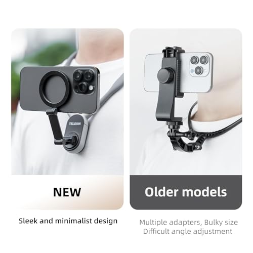 - 【فك مغناطيسي قوي】يعتمد حامل الموبايل على الرقبة على تصميم مغناطيسي سريع الفك، حيث يحتوي على 12 قطعة مغناطيسية قوية من الألومنيوم تضمن ثبات الموبايل أثناء التصوير دون خوف من سقوطه. هيكل رفع مدمج من خليط من الزنك سريع وسهل التركيب، يحقق التصوير من منظور الشخص الأول مع التخلص من عملية الفك المملة لحاملات الموبايل.