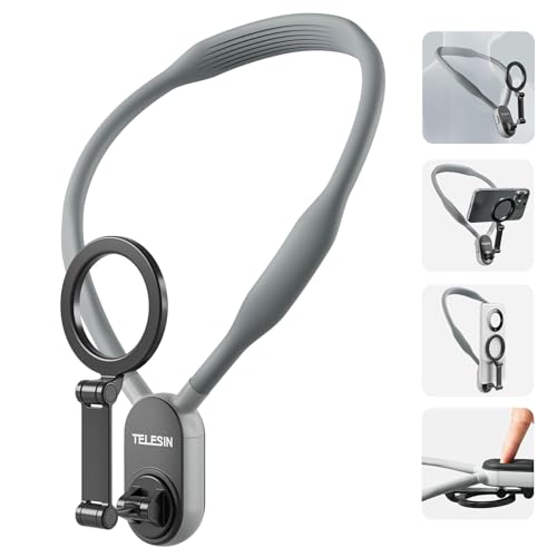 حامل رقبة مغناطيسي للموبايل للالتقاط صور السيلفي من منظور الشخص الأول والفيديو بدون استخدام اليدين، حامل بحزام صدر لتسجيل الفيديو لآيفون سلسلة 16 15 14 13 12 وأندرويد، رمادي