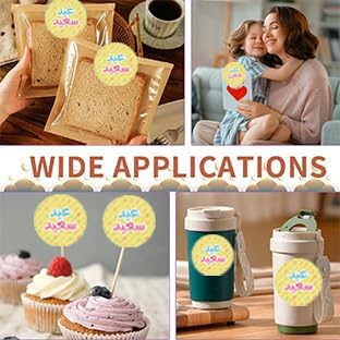 - استخدام واسع النطاق: يمكن استخدام ملصقات العيد للصق على أكياس الهدايا وتغليف الهدايا وأكياس تغليف الطعام وصناديق الحلوى وختم المظاريف وما إلى ذلك. ملصقات لطيفة لأطفالك لتزيين حفلات المهرجانات الإسلامية ويمكن لصقها على الموبايل او السياره او اللابتوب حيث انها مقاومه للماء والخدوش وتزيين كروت العيديه