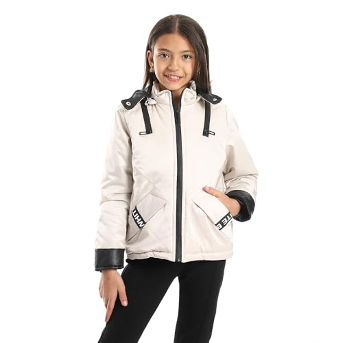 جاكيت بناتي مقاوم للماء بسوستة من اندورا - لون عاجي - 36W24G0402
