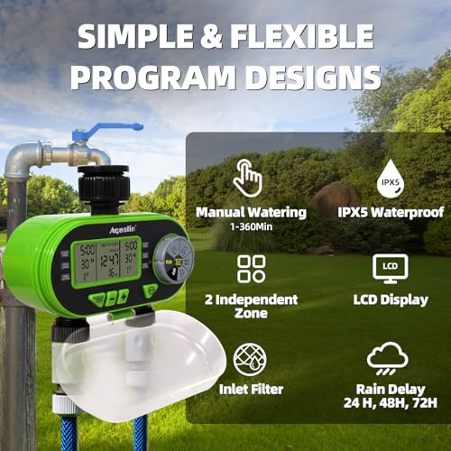 - منفذان مستقلان - يتميز بصمامين مستقلين مع أقصى إعدادات المرونة. يمكن برمجة وقت بدء الري والمدة والتردد ووقت التأخير لمخرجين بشكل مستقل، مما يلبي احتياجات الري المختلفة.