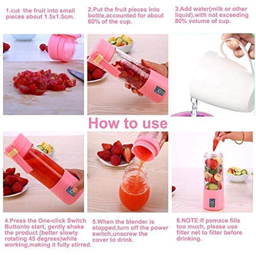 - متعدد الوظائف - خلاط العصير مناسب لخلط ومزج جميع أنواع الفواكه والخضراوات، حيث يمكنك صنع عصير لذيذ طبيعي وميلك شيك وسموذي وأطعمة الأطفال الأخرى. سهل الحمل ورائع للسفر والأماكن الخارجية، (ملاحظة: قبل الاستخدام، يرجى قراءة وصف المنتج والمقدمة على صفحة الويب بالتفصيل، وفهم الاحتياطات لضمان أن السهم الموجود على الكوب بمحاذاة المفتاح، ولا يمكن تشغيل الكوب فارغا، وإلا فلن يبدأ الجهاز بشكل طبيعي)