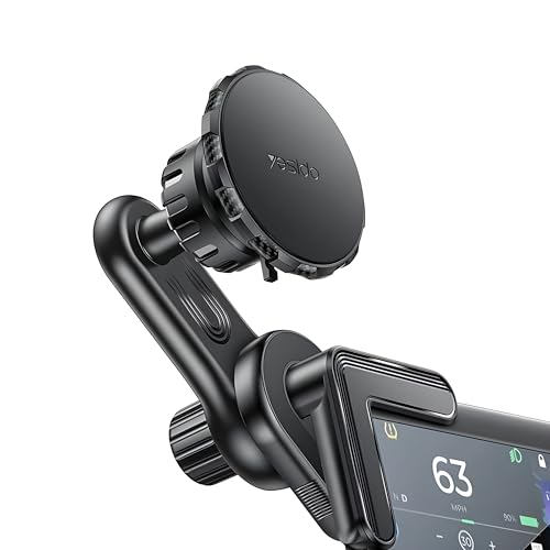 - [مغناطيس قوي لتثبيت سريع للهاتف]: مزود بمغناطيس فائق القوة يُثبت هاتفك فورًا بمجرد وضعه، مما يمنع الانزلاق أو الاهتزاز. يمكنك وضع الهاتف بيد واحدة دون الحاجة إلى ضبط مستمر، مما يوفر لك راحة أثناء القيادة وسهولة في الوصول إلى الهاتف في أي لحظة.