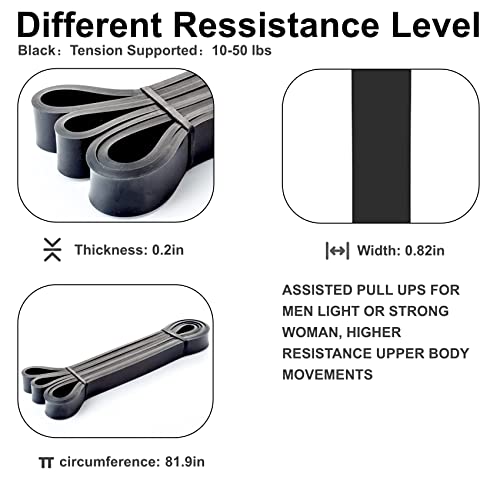 رباطات مقاومة مطاطية قوية من بونلالا للتمارين الرياضية ورفع الأثقال وتمارين العقلة، أسود