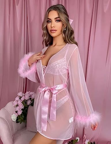 لانجيرى سيكسى مع روب حريمي، قميص نوم بروب قصير، بيبى دول حريمى شفاف من فور اتش، 225 بيبي بينك، مقاس ، صناعية